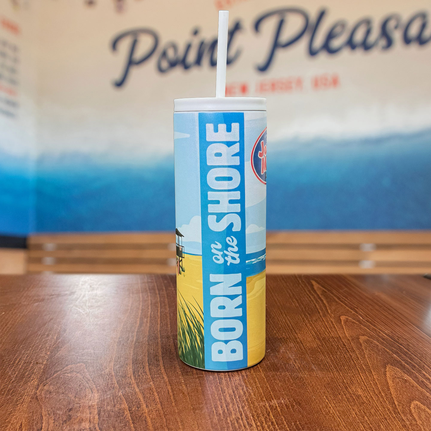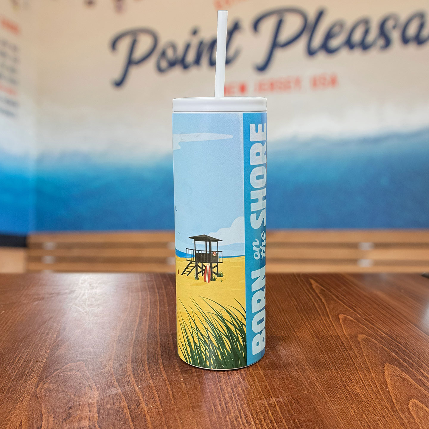 The sleek, skinny design might be one of the first things noticed about this tumbler, but it also has double wall stainless steel insulation, a spill reduction straw and comfortable rubberized finish. The matching lid and silicone straw complete the look. The narrow design of this 20 oz tumbler easily fits in standard cup holders and fits well in the hand. The double wall construction maintains the temperature of the contents so the last sip tastes as good as the first.