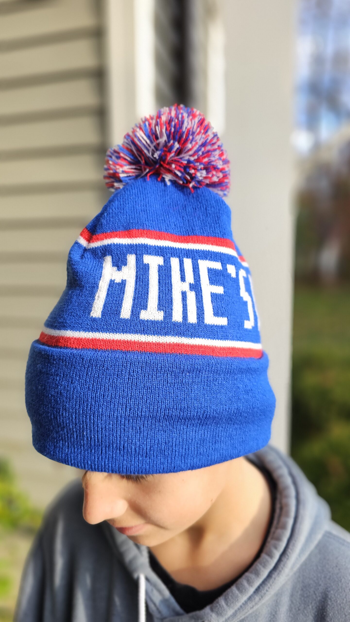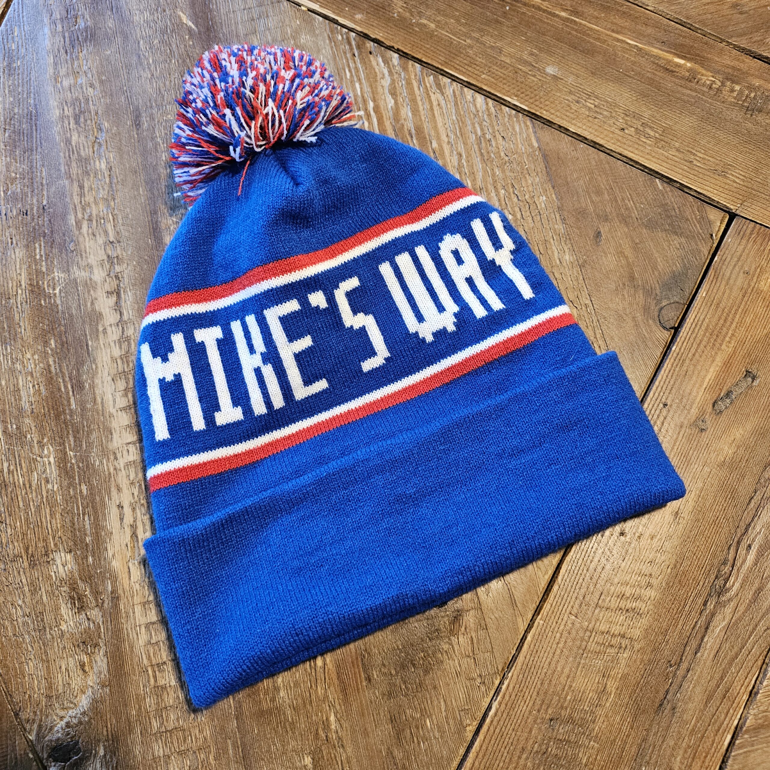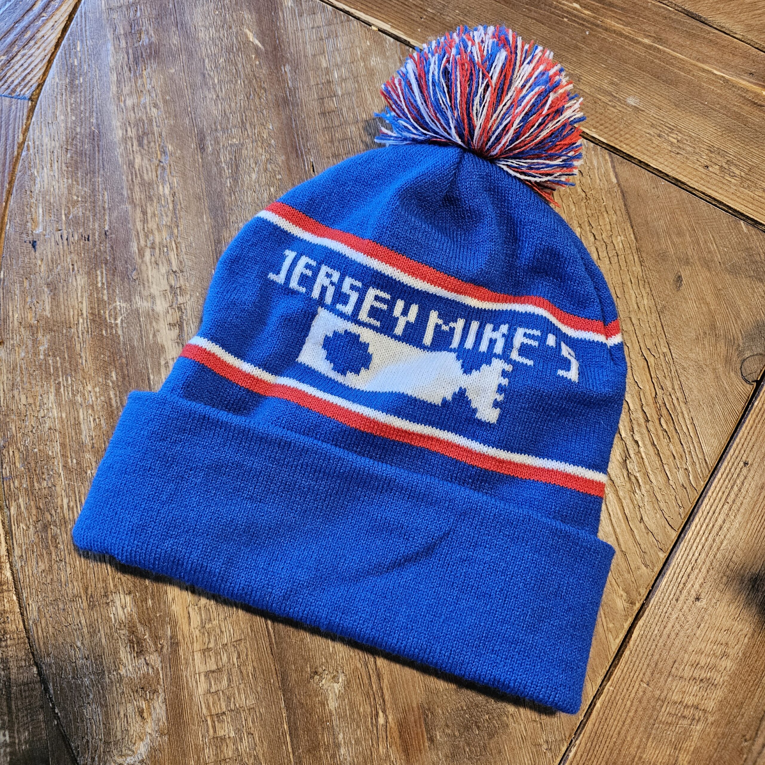 Stay warm the Mike’s Way! This custom-knit Jersey Mike’s beanie brings cozy winter style together with bold brand pride. Featuring a vibrant blue base with red-and-white striping, a fully knit “MIKE’S WAY” graphic on one side and “JERSEY MIKE’S” on the other, plus a multicolor pom on top, this hat is made to stand out all season long.