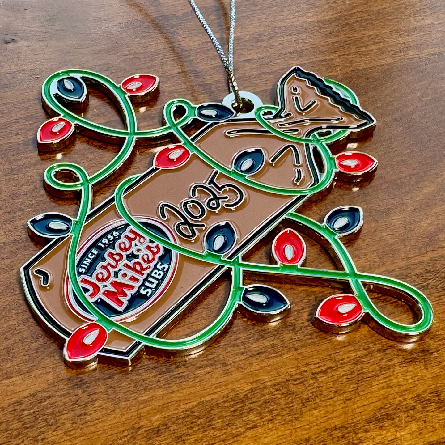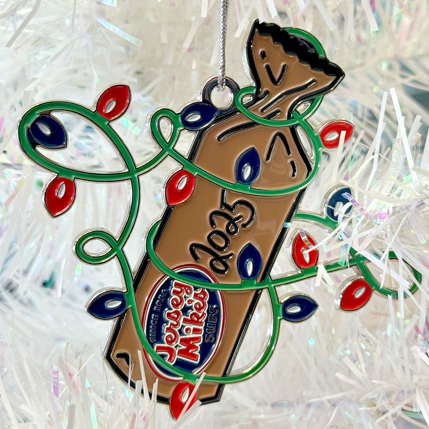 Add a little sub-love to your tree this season with our exclusive 2025 Jersey Mike’s Holiday Ornament! This collectible die-cast piece features a wrapped Jersey Mike’s sub decorated in a swirl of colorful holiday lights—because nothing says “season’s greetings” quite like your favorite sandwich, all lit up and ready to celebrate.