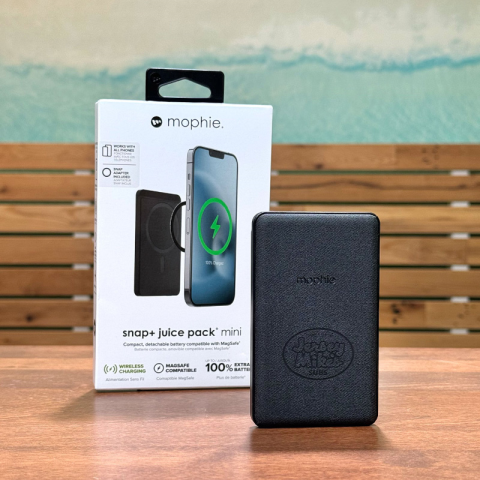 The mophie Snap+ 5000 mAh Wireless Power Bank has a rechargeable lithium polymer battery (18.5Wh) that works as a charging pad or a regular power bank on the go. The inside magnetic hold ensures accurate placement for iPhone 12/13/14/15 series. The included snap adapter can easily attach to the back of a non-MagSafe compatible iPhone or any other smartphones. The Type-C port is compatible as an input and output for charge and discharge. USB-A-to-Type-C cable included. Works with most plastic phone cases on.