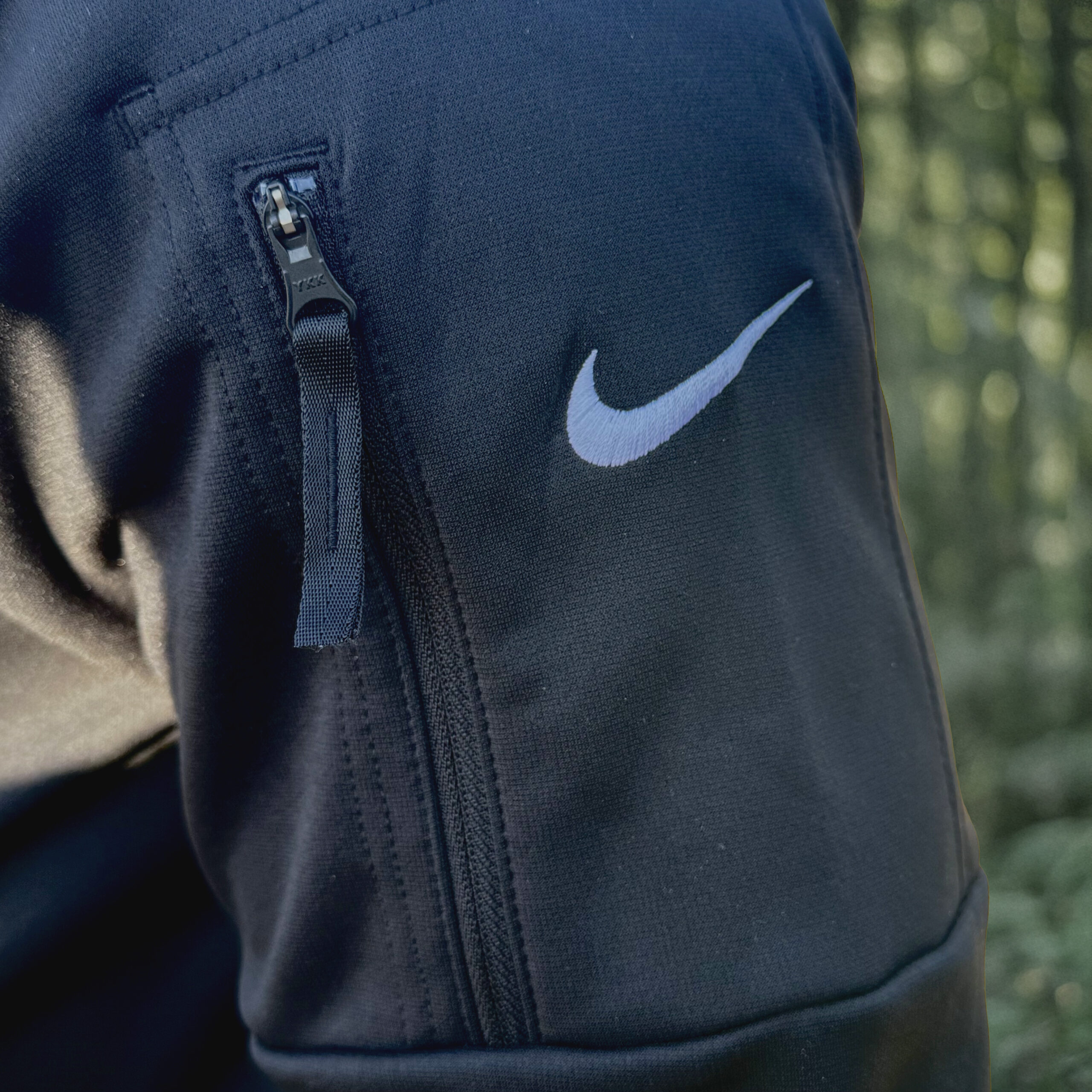 This Nike hoodie with a zippered left arm pocket brings the heat to your workout with Therma-FIT fabric. Therma-FIT helps manage your body’s natural heat to keep warm in cold-weather conditions. The design includes a three-panel hood with black drawcords and a front pouch pocket. Self-fabric cuffs and hem. A Nike Swoosh logo is embroidered on the left sleeve.
